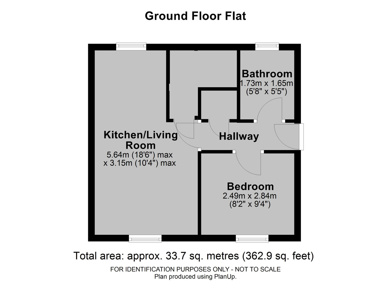 Hallway: single door airing cupboard, doors to living/kitchen area, bedroom and bathroom.