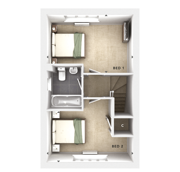Upstairs, discover the two double bedrooms with the second bedroom including an extra storage cupboard. The first floor is finished with the family bathroom, fitted with a stylish white bathroom suite, shower package and chrome fittings.